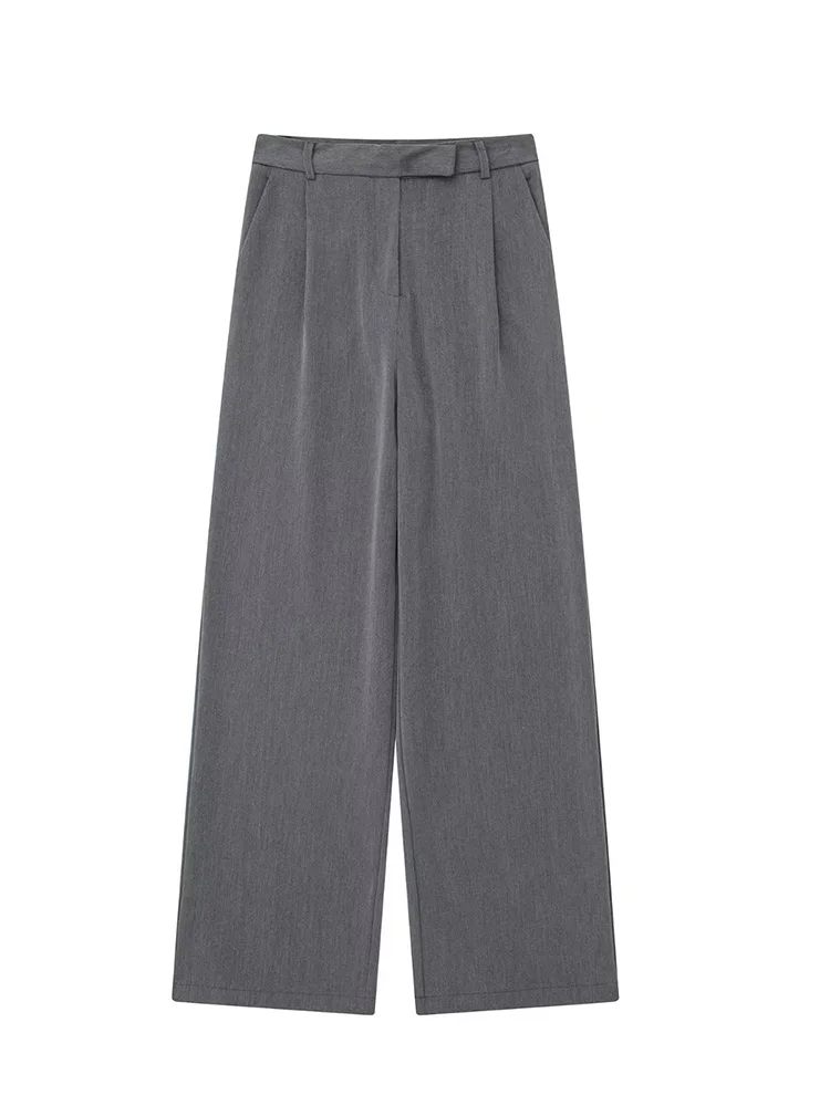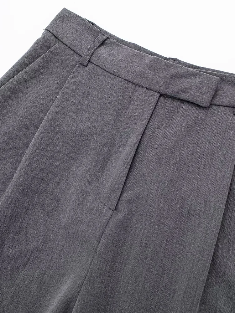 These high-waist straight pants offer a clean and flattering silhouette. The front zipper detail adds a stylish and modern touch. Their full-length design creates a sleek and elongated look. The vintage-inspired style blends effortlessly with contemporary fashion. Soft, comfortable fabric makes them perfect for all-day wear. These trousers pair well with blouses, sweaters, or fitted tops. The structured shape gives them a polished and feminine feel. They are suitable for both casual outings and office settings. The high waist enhances the figure and provides secure comfort. These chic pants are a versatile wardrobe essential for stylish women.