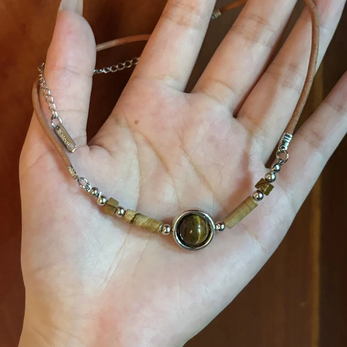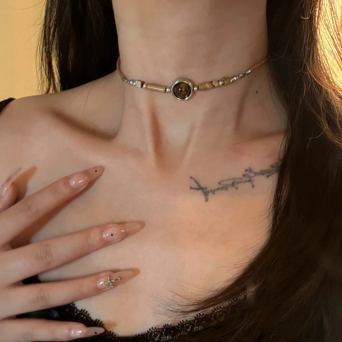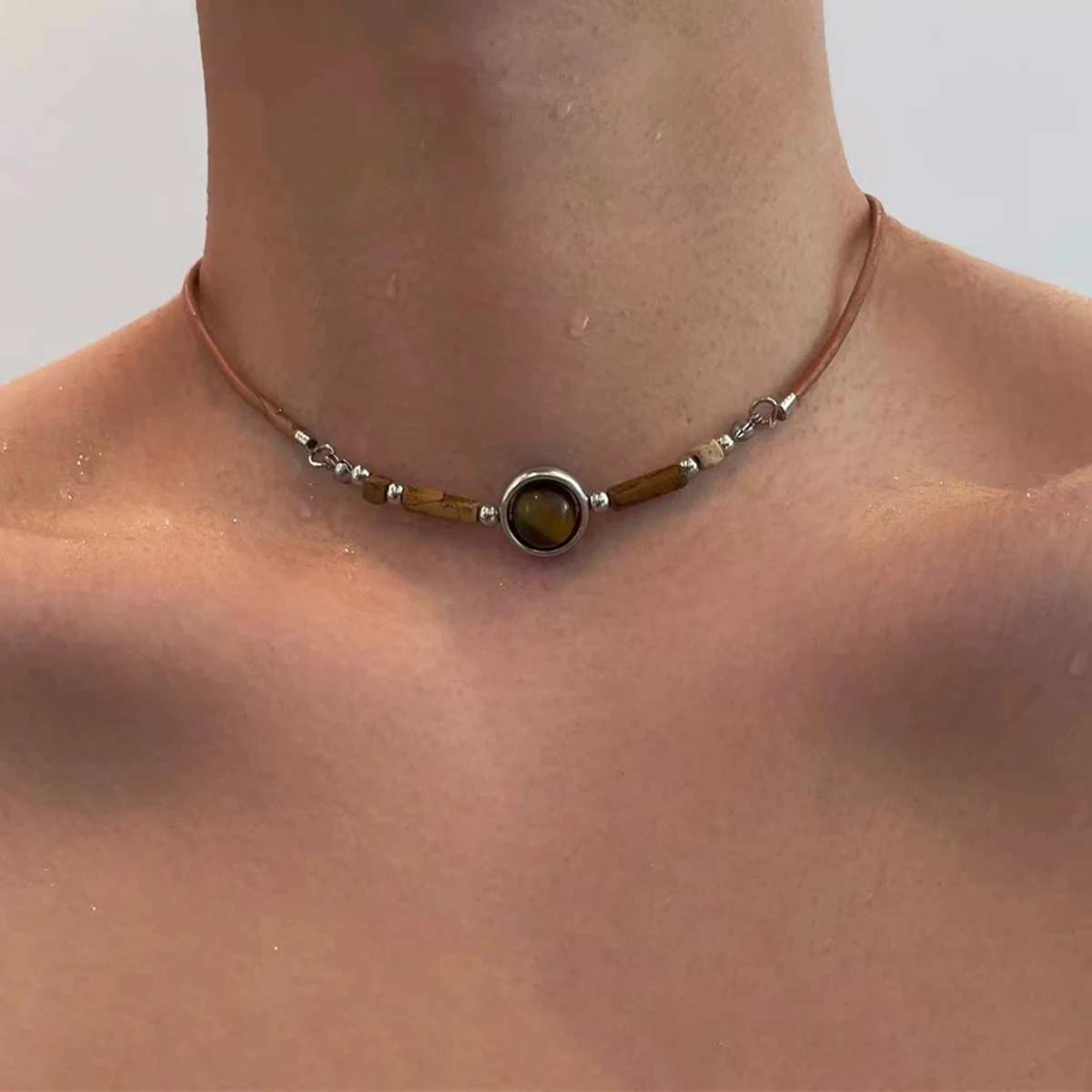 This tiger eye stone beaded necklace blends punk aesthetics with high-end fashion. Crafted with natural tiger eye beads, it adds a striking and unique look. The short clavicle-length design sits perfectly on the neckline. Retro leather chain detailing enhances the edgy and versatile style. Suitable for both men and women, it complements casual and statement outfits. Lightweight and comfortable for all-day wear. Ideal for layering with other necklaces or wearing alone for a bold look. Perfect for parties, daily wear, or fashion photoshoots. Durable construction ensures long-lasting beauty and quality. This necklace is a stylish accessory for anyone who loves unique, retro-inspired jewelry with a modern edge.