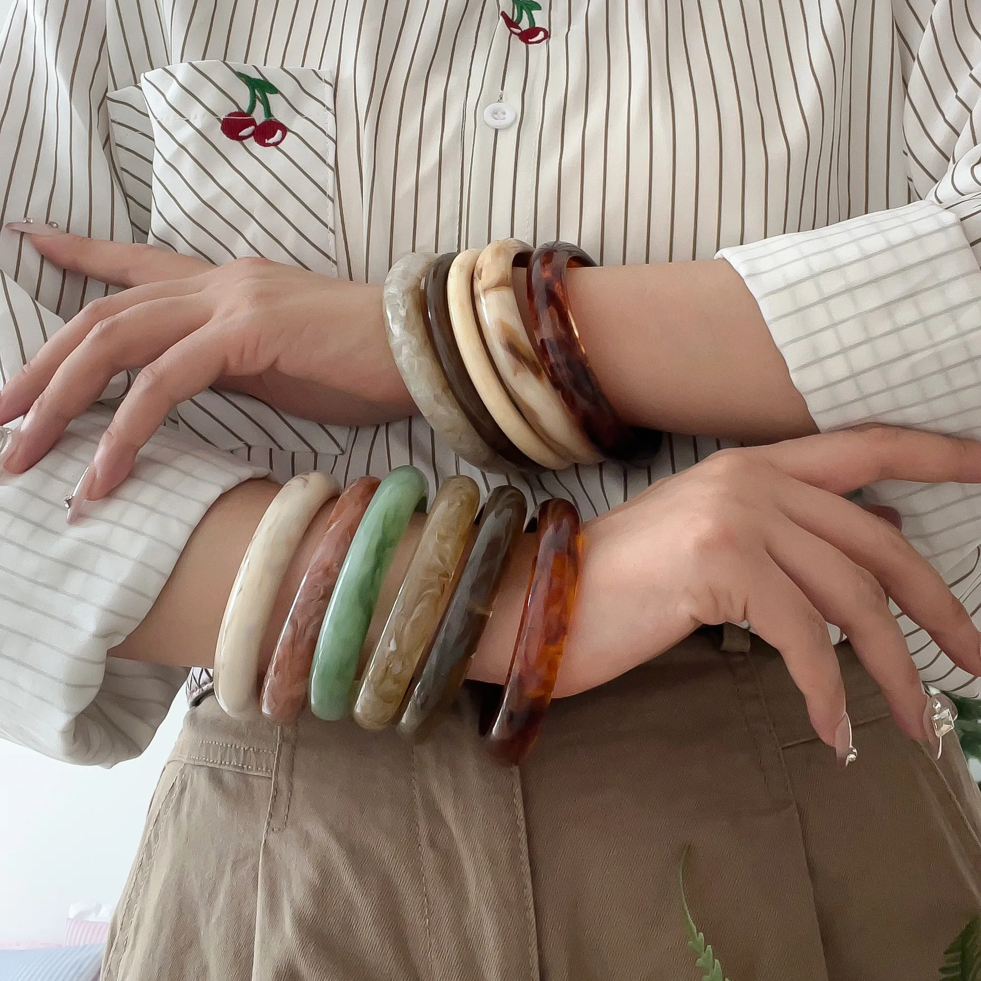 This smudged resin bracelet blends vintage charm with modern Korean fashion style. Made from high-quality acrylic, it is lightweight and comfortable for all-day wear. The subtle smudged design gives each piece a unique and artistic look. Its simple and elegant style makes it easy to pair with any outfit. Perfect for layering with other bracelets or wearing alone as a minimalist accessory. Durable construction ensures long-lasting use. Ideal for casual, work, or social occasions. Makes a thoughtful gift for friends, family, or loved ones. Versatile design suits women of all ages and fashion tastes. This bracelet is a chic and effortless addition to any jewelry collection.